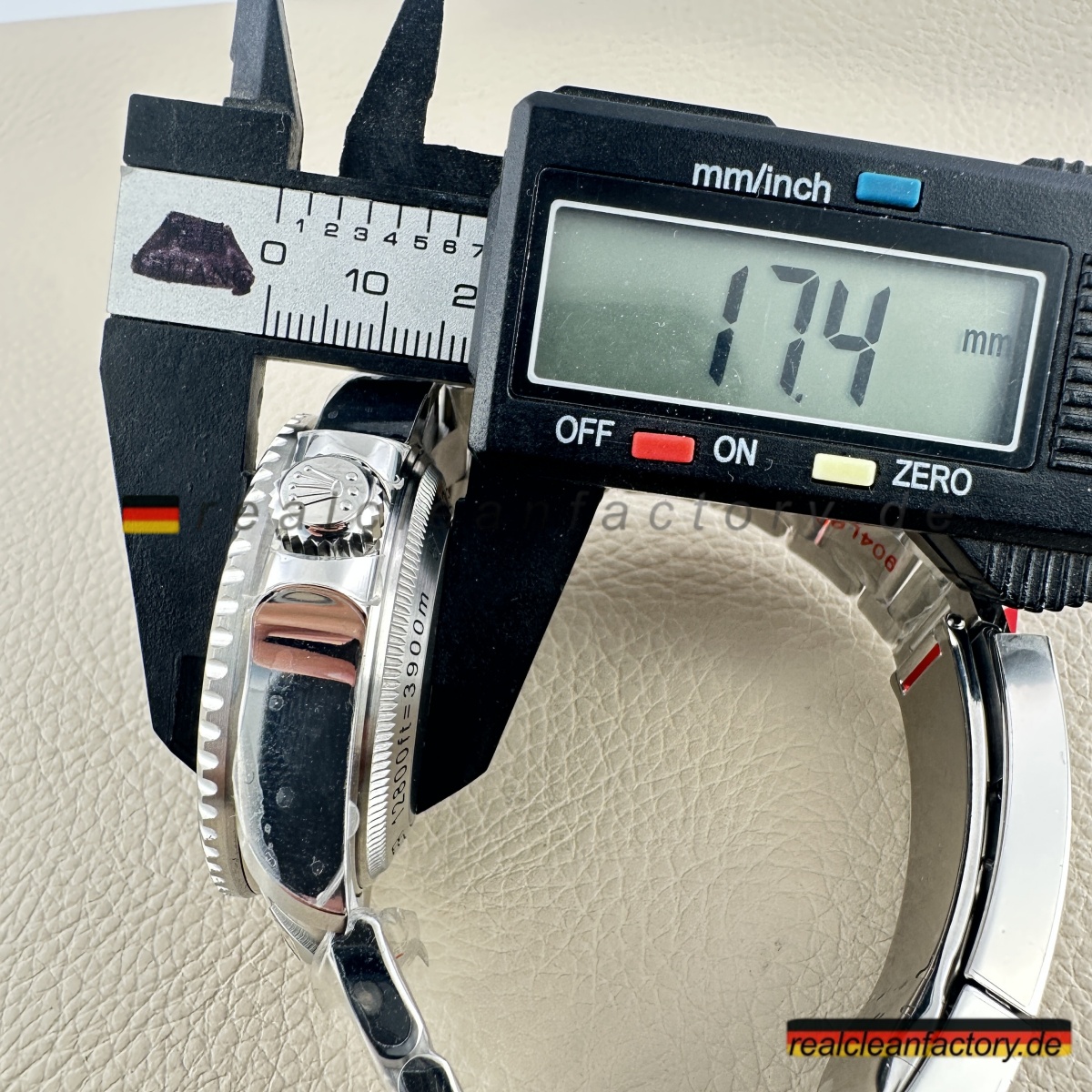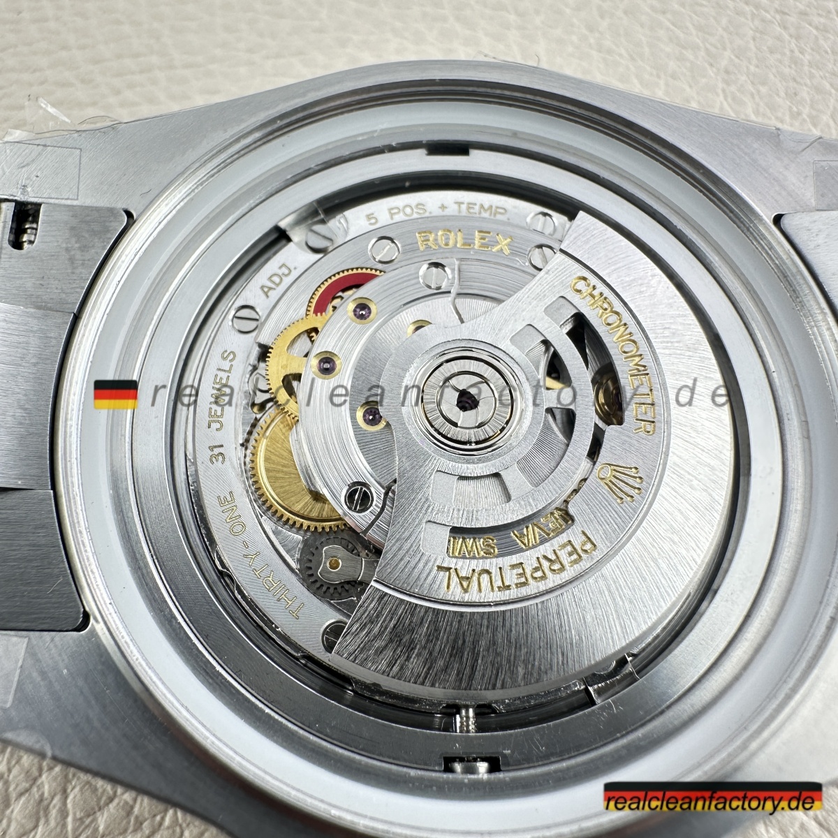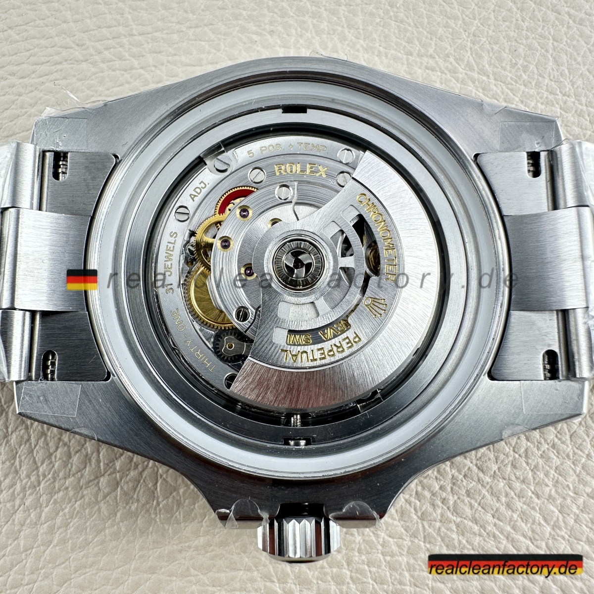 - Das Super Clone 3235 Kaliber liefert Schweizer Präzision: bidirektionaler Aufzug, 70 Stunden Gangreserve, Chronergy-Hemmung – wie beim echten Rolex. Damit es perfekt im massiven Deepsea-Gehäuse funktioniert, hat Clean Factory die Integration akribisch abgestimmt: exakte Wellenlänge, passgenaue Aufzugskrone, präzises Zusammenwirken aller Komponenten. Diese Sorgfalt trennt Clean Factory von Herstellern, die einfach Standardwerke einbauen.