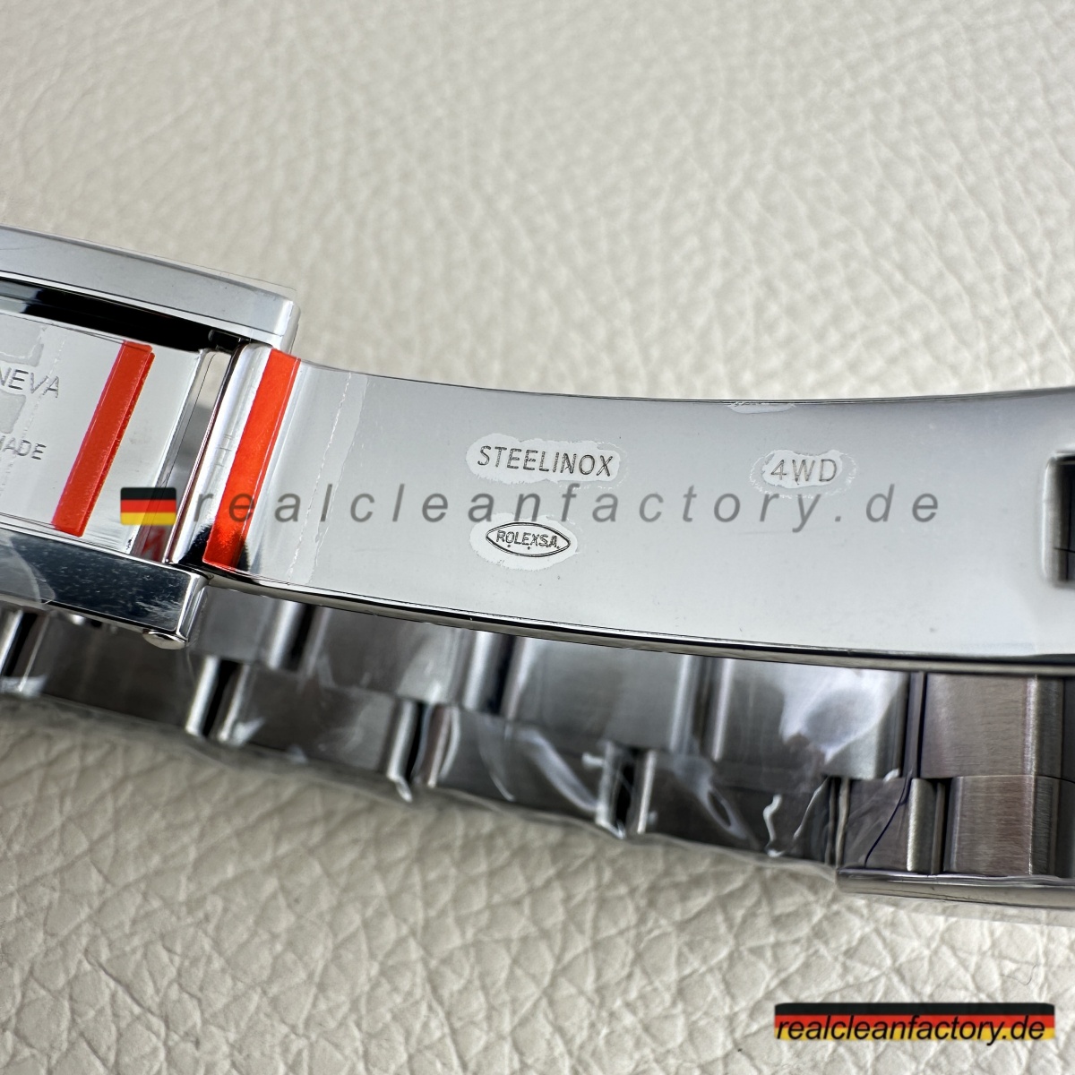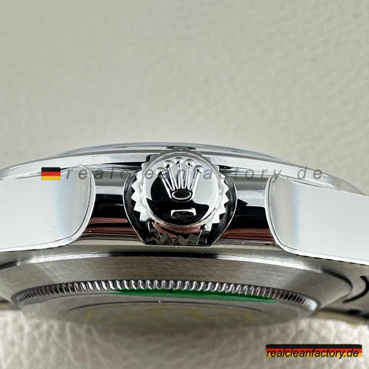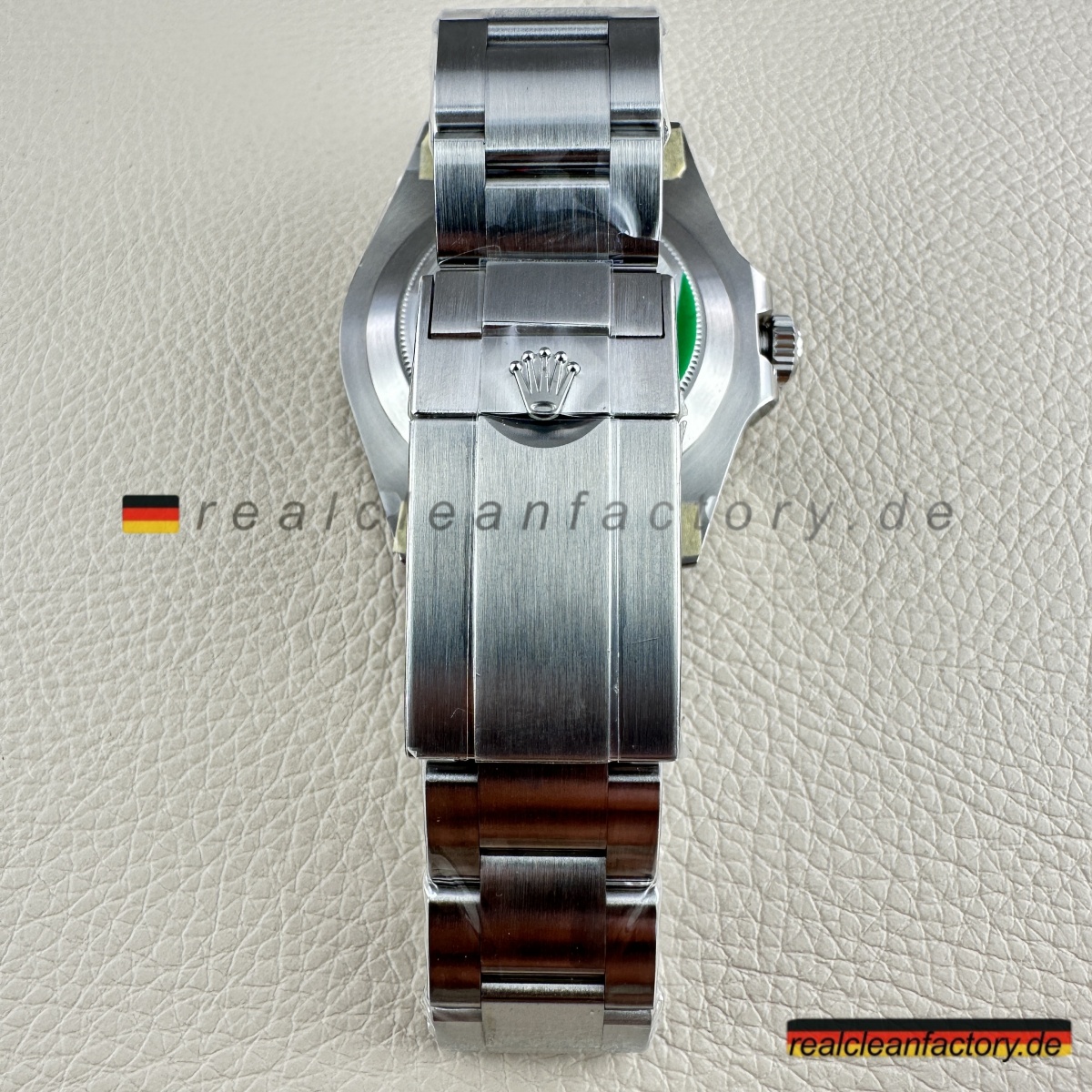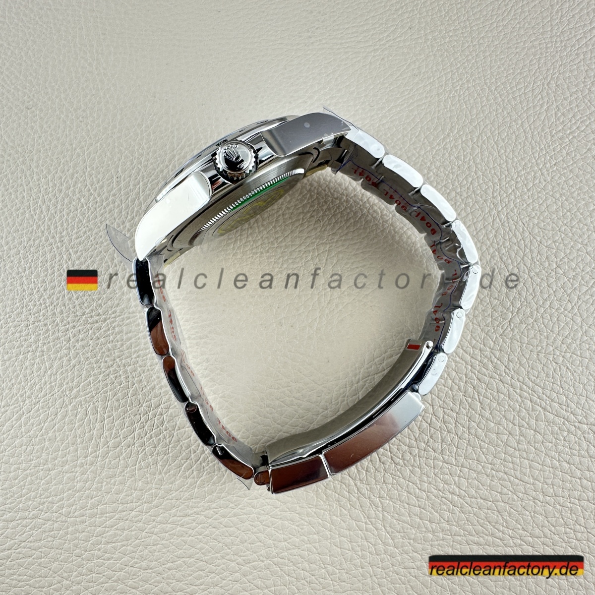 - Gehäuse aus 904L-Edelstahl mit korrekt direktionalem Satinfinish – keine hochglanzpolierten Flächen, die schon von weitem „Replik“ schreien. Feste Lünette aus Stahl mit klar gravierter 24-Stunden-Skala – funktional und präzise, genau wie sie sein soll.