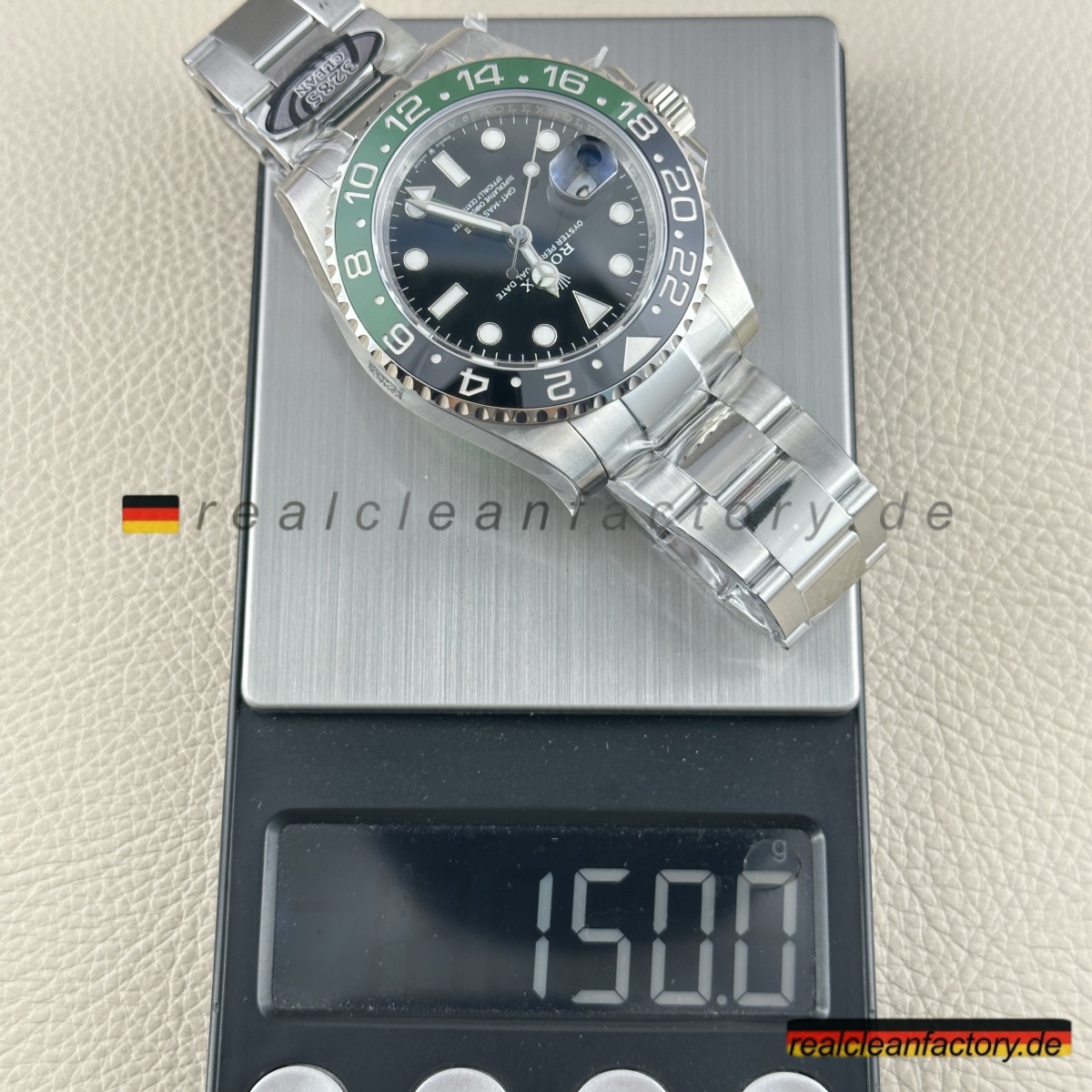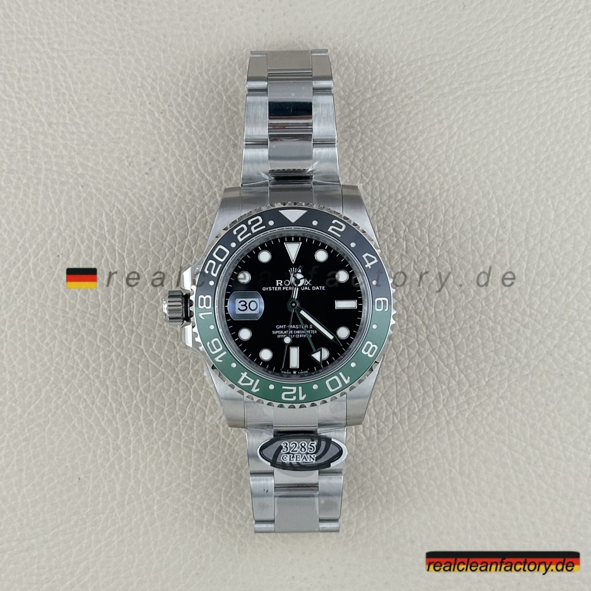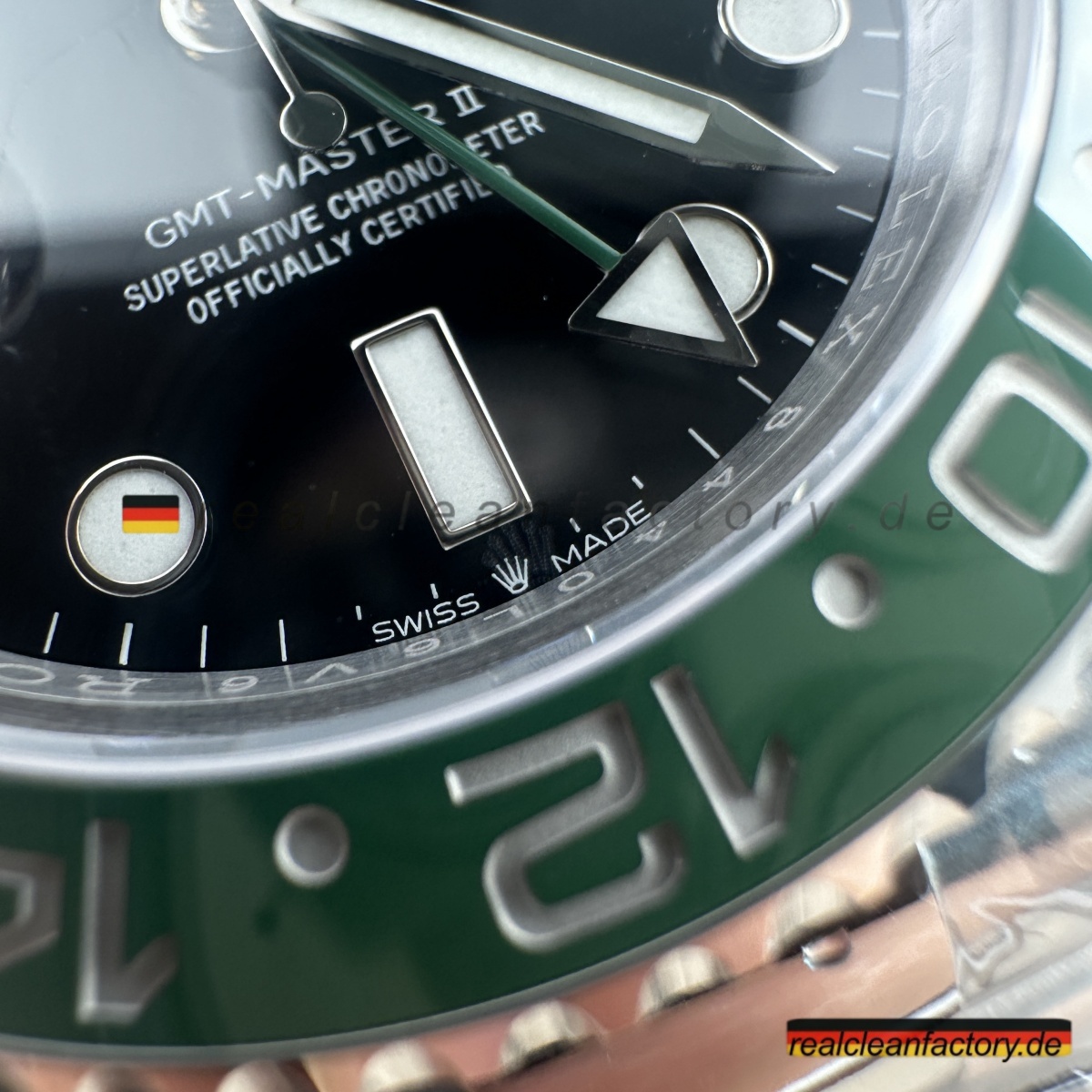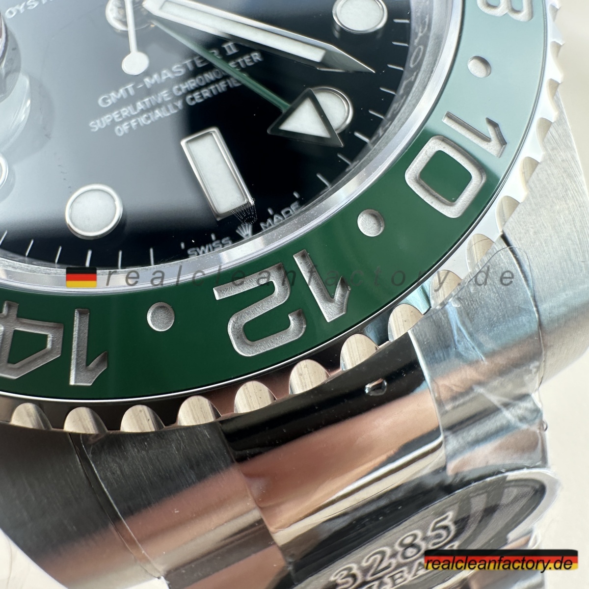 Wir sind die authentische Clean Factory – akzeptieren Sie keine Imitationen. Der höhere Preis garantiert Ihnen eine Uhr mit der perfekt ausgeführten V3-„Sprite“-Lünette, die selbst anspruchsvolle Sammler begeistert. Für alle, die die einzigartige linkshändige GMT-Master II mit ihrer markanten grünen und schwarzen Keramiklünette und dem robusten Oyster-Armband schätzen, bietet dieses Modell unvergleichlichen Wert, gerade weil die Originalversion nahezu nicht erhältlich ist.
