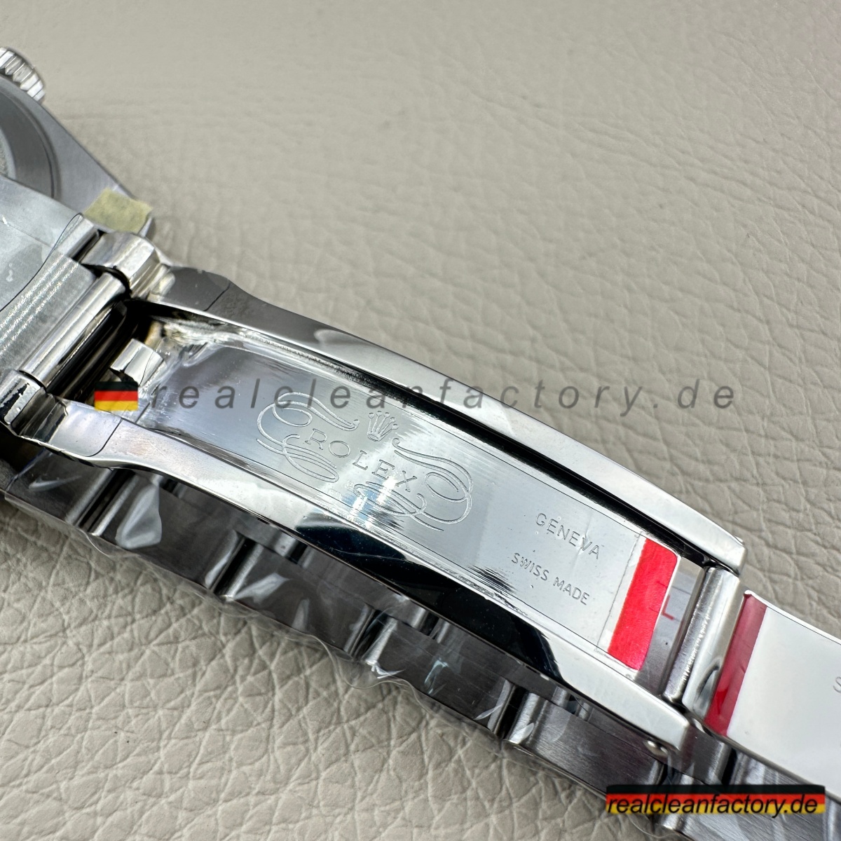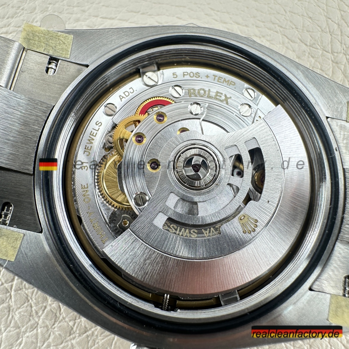 - Das Super Clone 3230 Werk beweist Clean Factorys technisches Niveau. Neben exakter Zeitmessung sind alle Gravuren und Markierungen detailgetreu reproduziert – Buchstaben, Zahlen und das Rolex-Krönchen stimmen zu 100% mit dem Original überein. Die Chronergy-Hemmung arbeitet wie vorgesehen, die 70-Stunden-Gangreserve ist real, und der Aufzug fühlt sich authentisch schweizerisch an. Jede Kronenposition rastet präzise ein, wie es sich gehört.