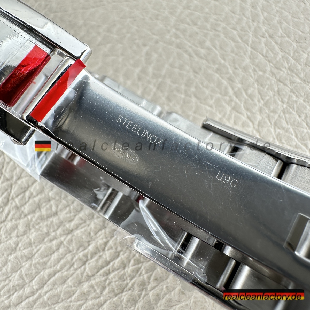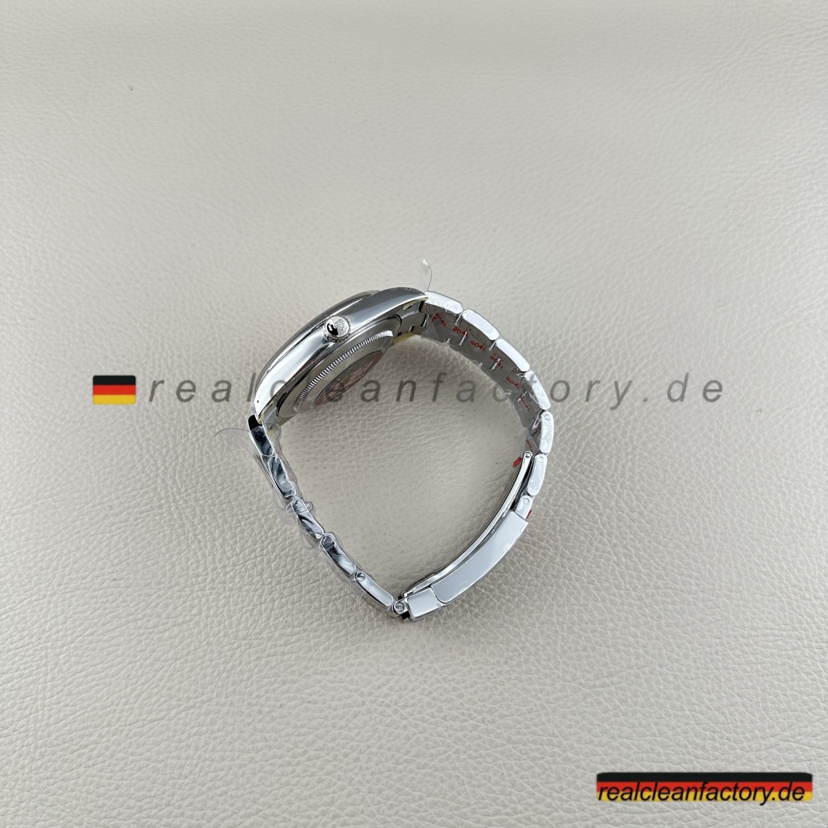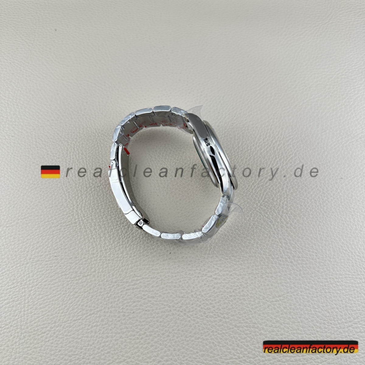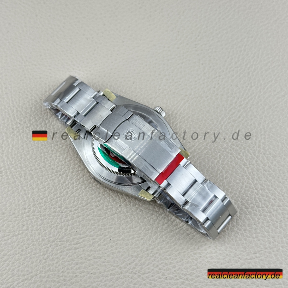 - Das Super Clone 3230 Werk zeigt Clean Factorys technisches Niveau. Neben der präzisen Zeitmessung sind alle Gravuren – Zahlen, Buchstaben, Rolex-Krone – identisch mit dem Original. Die Chronergy-Hemmung arbeitet zuverlässig, die 70-Stunden-Gangreserve erfüllt, was sie verspricht, und das Aufziehen fühlt sich echt schweizerisch an. Jede Kronenposition rastet mit dem typischen Widerstand ein, den Kenner sofort erkennen.