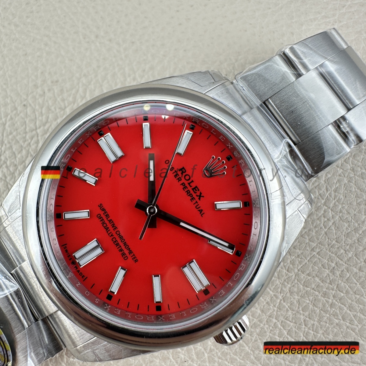 - Clean Factory Rolex Oyster Perpetual 124300-0007 Rotes Zifferblatt – Super Clone 41mm