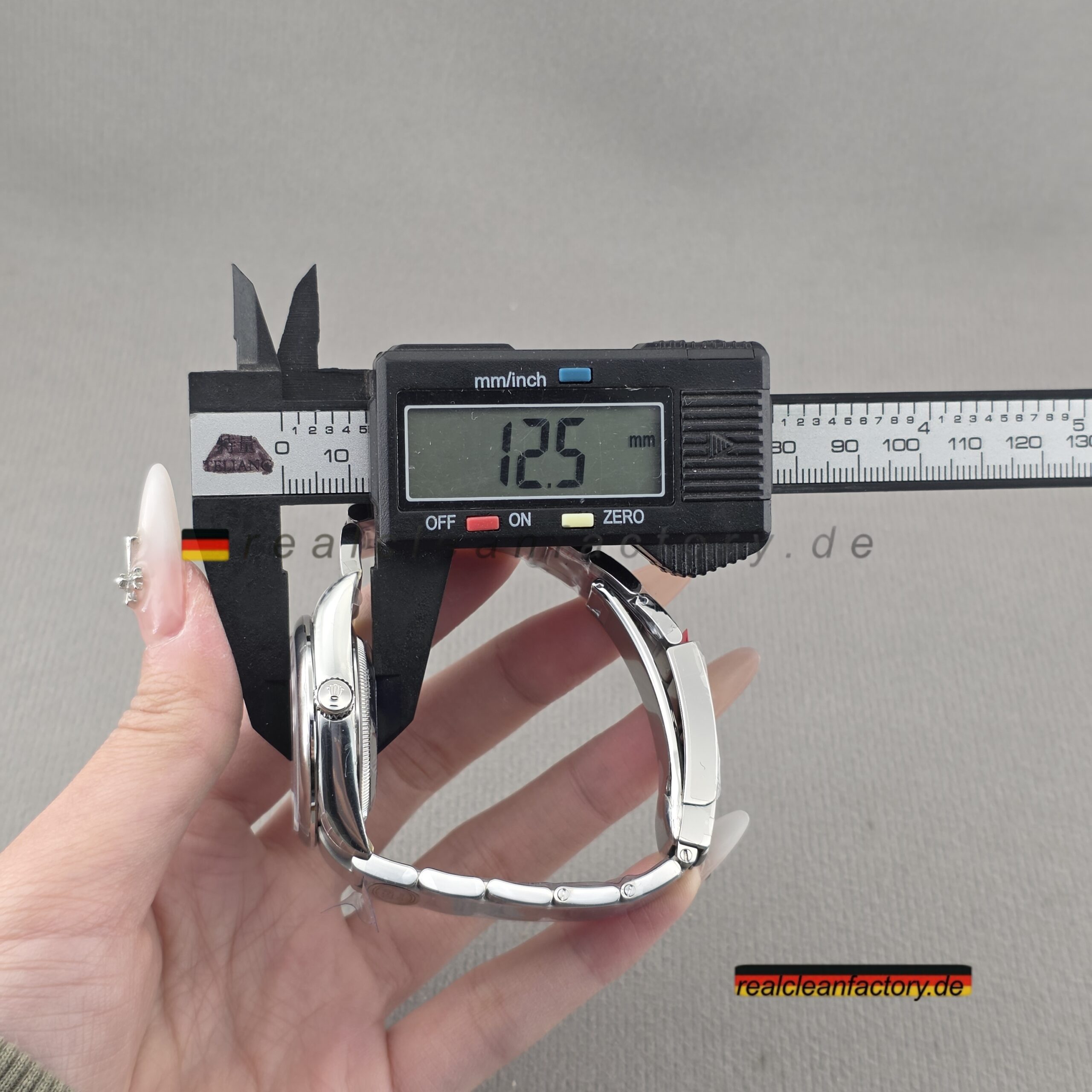 • Das Super Clone 3230 Werk liefert authentische Rolex-Performance. Clean Factory hat jedes Detail akribisch repliziert – interne Markierungen, Bauteilformen und Finishes entsprechen exakt den Originalen. Die Chronergy-Hemmung arbeitet reibungslos, die Gangreserve beträgt wie spezifiziert 70 Stunden, und der Aufzug fühlt sich typisch schweizerisch an. Das Drehen der Krone vermittelt das charakteristische Rolex-Widerstandsgefühl, das Qualität bestätigt.