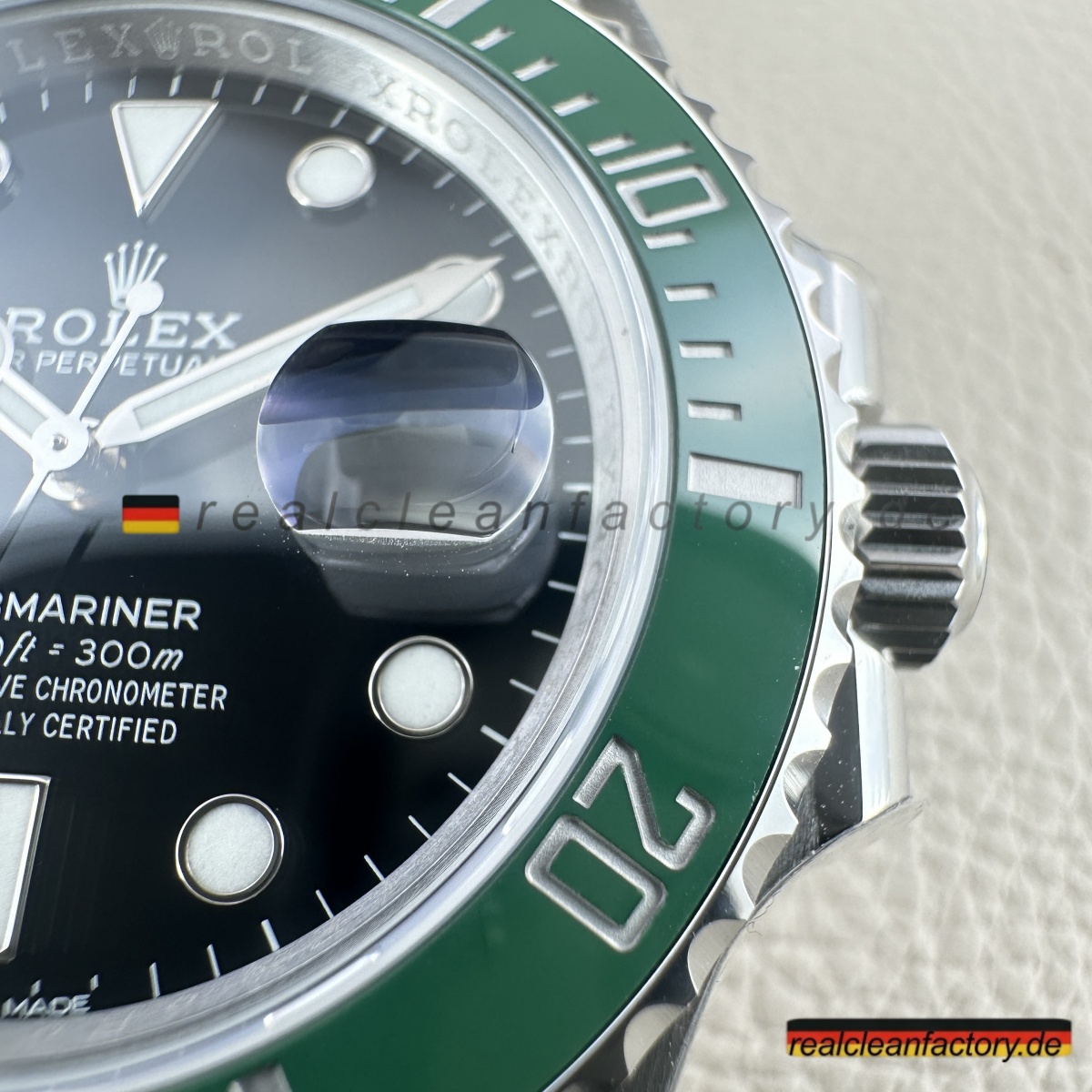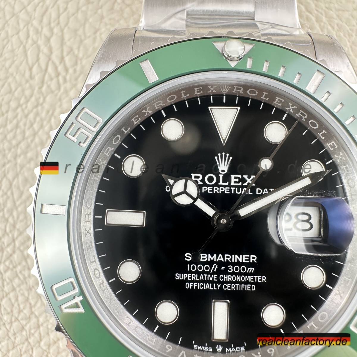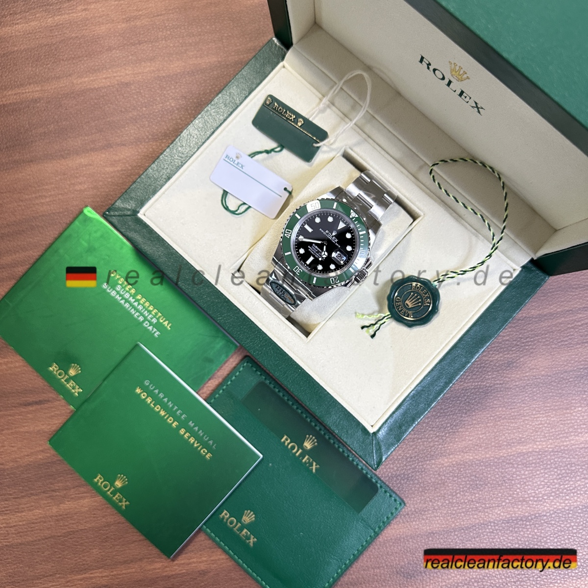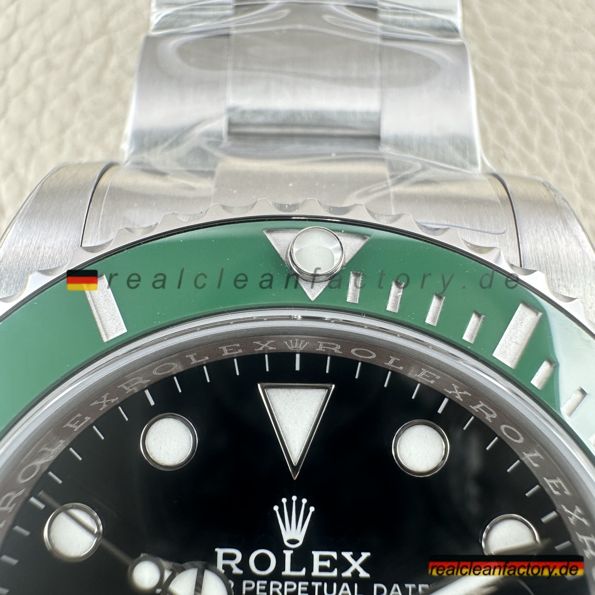 - Die Clean Factory 126610LV-0002 „Starbucks“ ist nicht einfach nur eine weitere grüne Submariner – sie ist ein Meisterstück dessen, was für anspruchsvolle Sammler zählt. Entwickelt, um Rolex‘ Update von 2020 perfekt zu spiegeln, fängt dieses Modell alles ein, was das Original sofort zum Klassiker gemacht hat. Schon beim ersten Anlegen merkt man es am Gewicht – echte 904L-Konstruktion mit diesem unverwechselbaren Gefühl von Substanz und Balance am Handgelenk. Mit 41 mm trägt sie die modernen Proportionen, die Rolex mit dieser Referenz eingeführt hat.