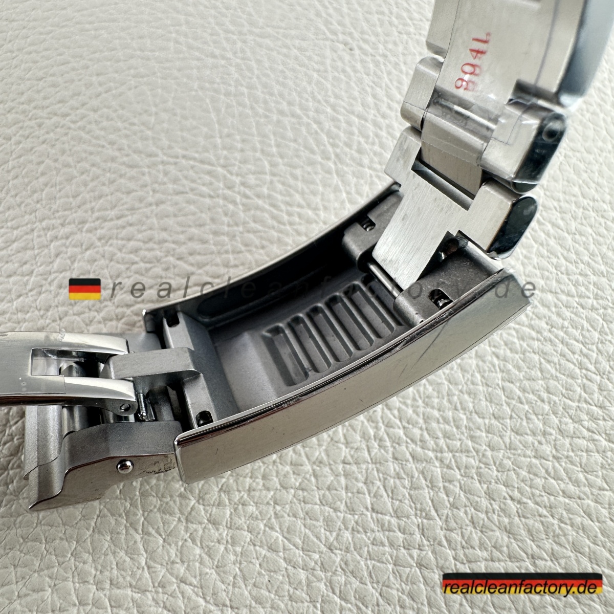 - Das Armband verdient besondere Erwähnung – vollständig gebürstet und poliert an exakt den richtigen Stellen, mit nahtlosem Übergang zur perfekten Glidelock-Schließe mit 2 cm Mikroverstellung. Jedes Glied bewegt sich mit dem charakteristischen Gefühl, das nur das echte Oyster-Armband erzeugt, das billige Repliken einfach nicht erreichen. Die etwas breiteren Proportionen ergänzen das 41-mm-Gehäuse ideal und schaffen ein harmonisches Gesamtbild, das Rolex‘ jüngste Designentwicklung perfekt repräsentiert. Anders als bei minderwertigen Nachbildungen sorgt unser modernes dreifach abgedichtetes Kronentubus-System für echte 300 m Wasserdichtigkeit, damit Sie diese Uhr in jeder Umgebung mit Vertrauen tragen können.