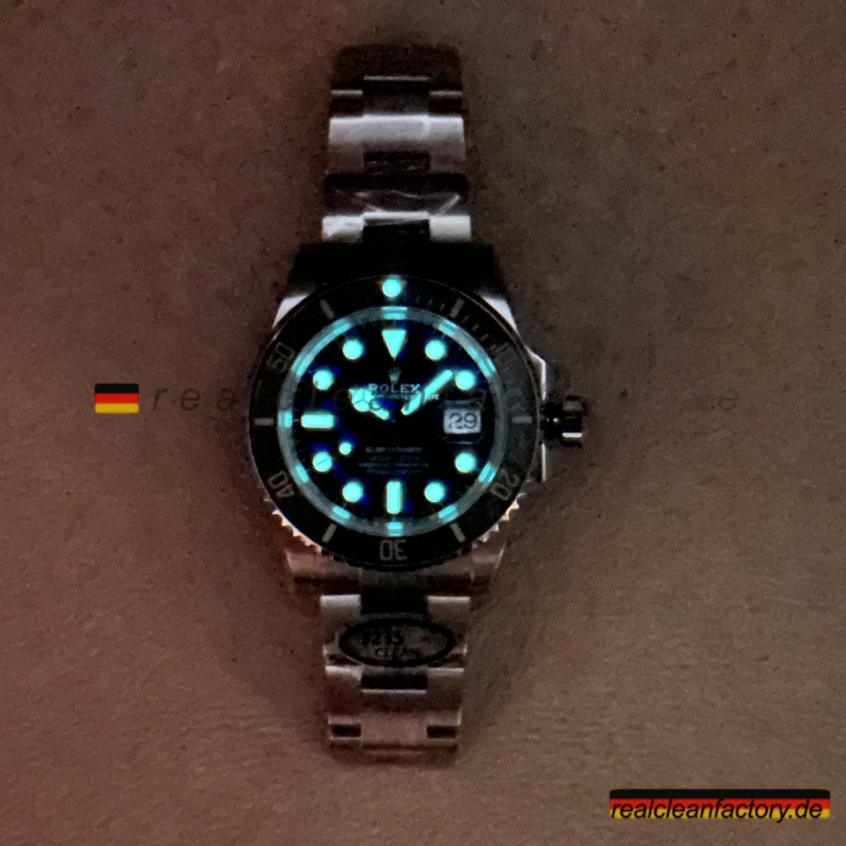 - Kräftig blau leuchtende Markierungen, die der echten Rolex-Leuchtkraft in Farbe und Dauer exakt entsprechen